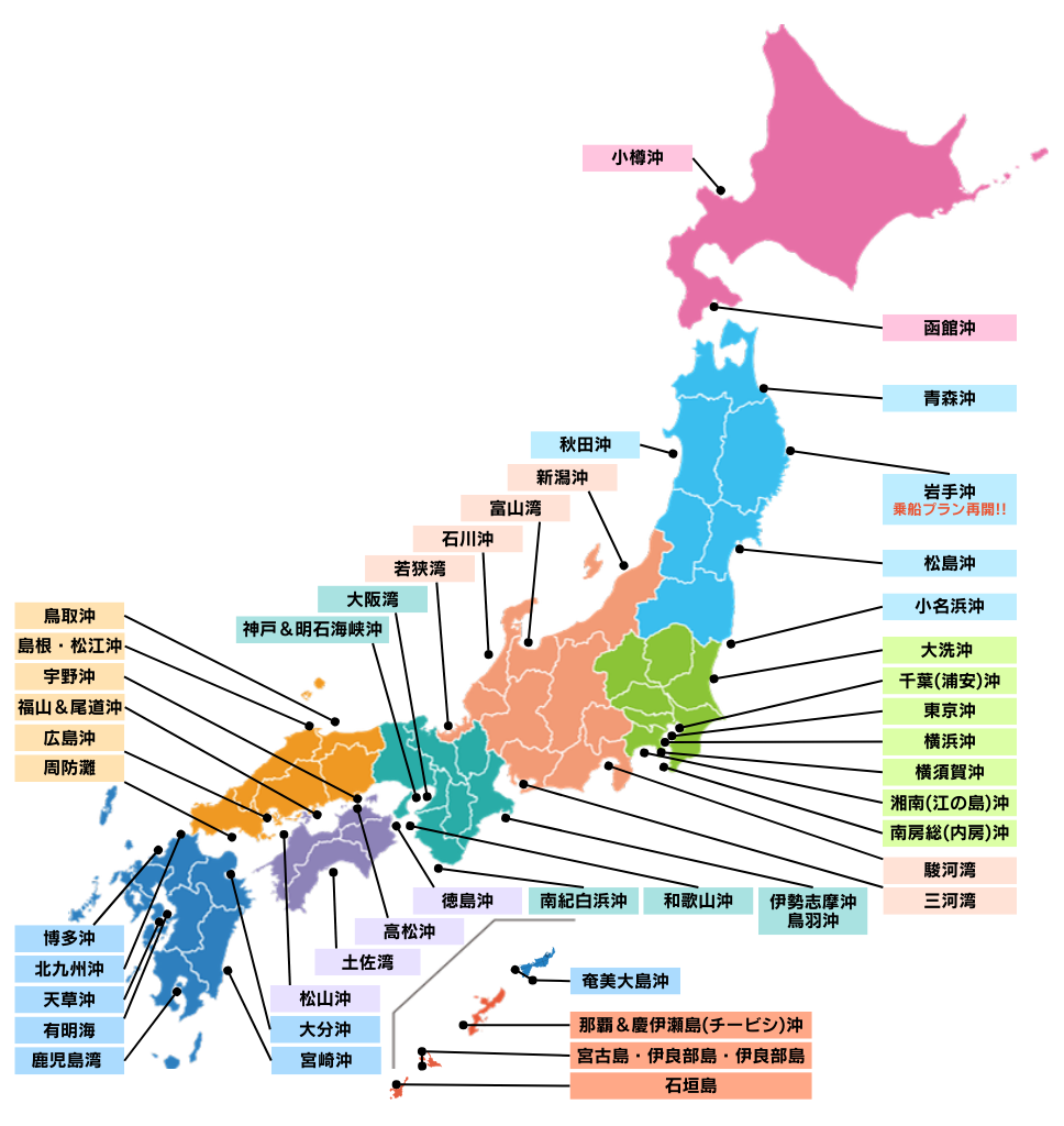 全国47海域以上にて対応可3種類の乗船プラン+完全おまかせのプランをご用意しております。