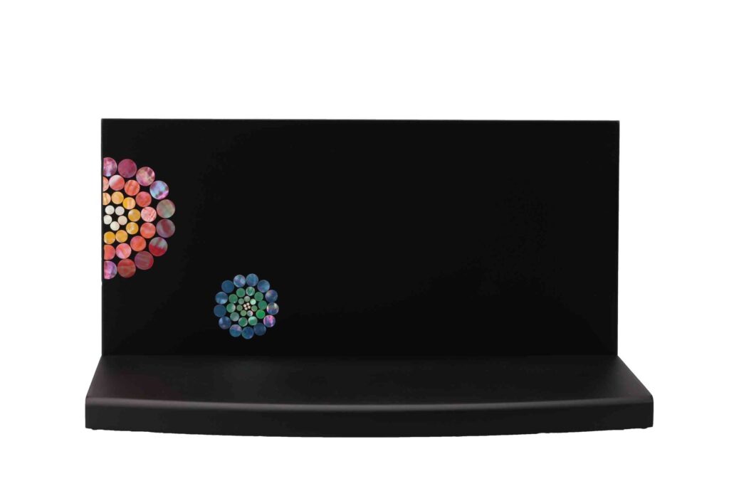 高岡の伝統工芸「螺鈿(ラデン)」技法にて仕上げた手元供養台です。