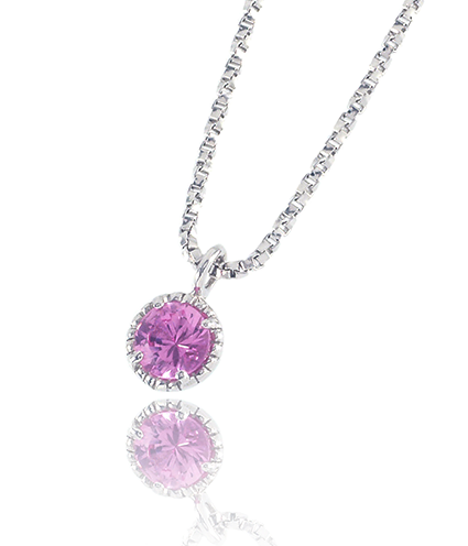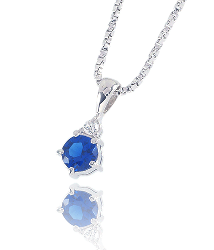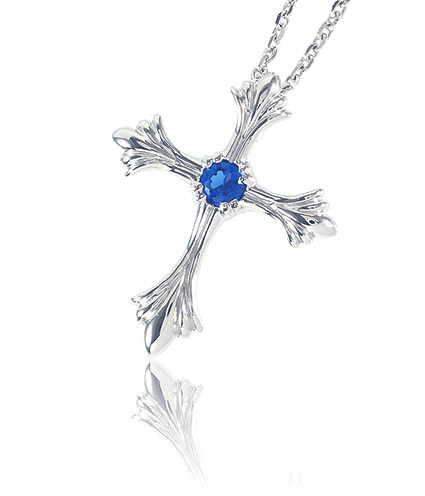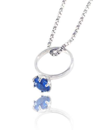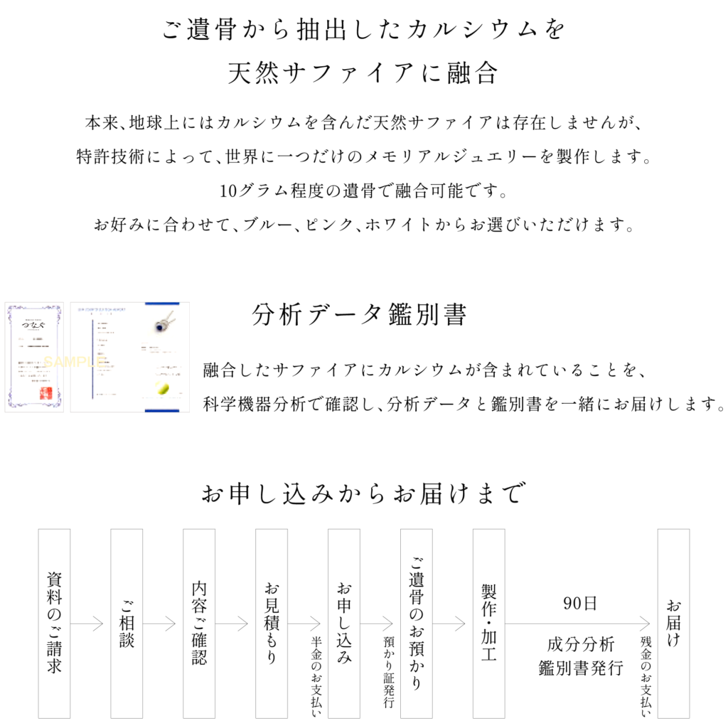 天然サファイアと、お遺骨から抽出したカルシウムを融合させた世界でたった一つのサファイアが、ネックレスとなって美しく輝きます。