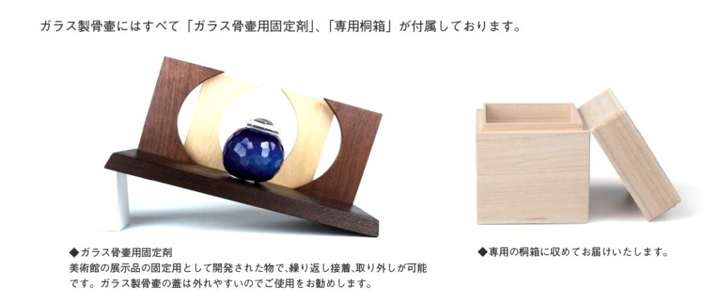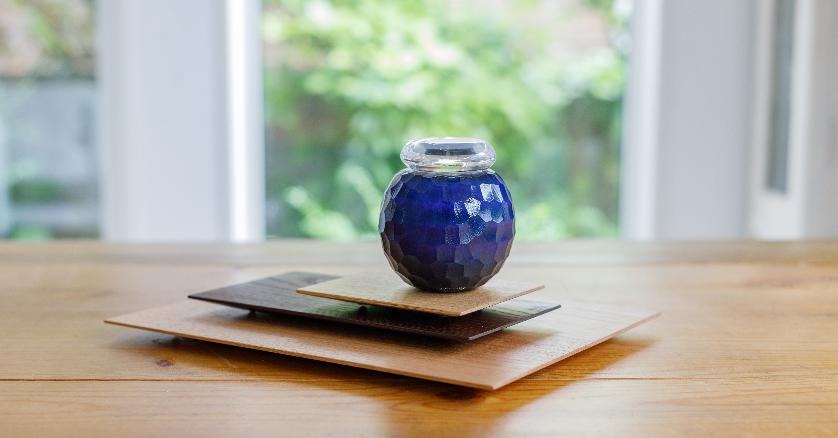個性豊かなガラス製の骨壷。