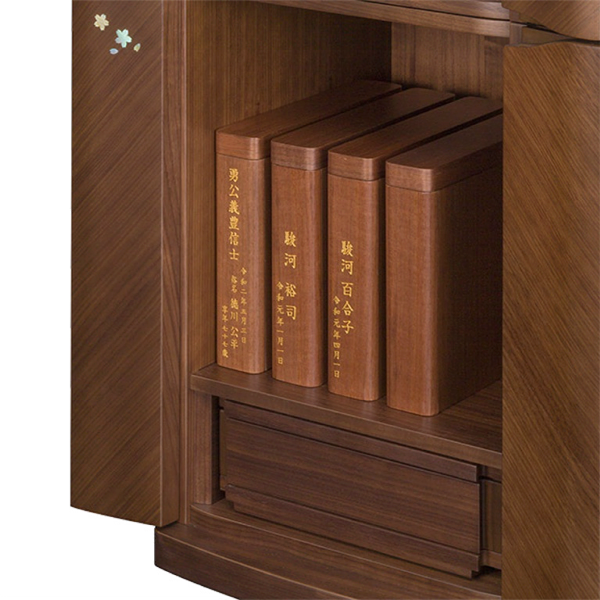 ブック型でお仏壇の下台や書棚などにも安置しやすいデザインです。